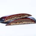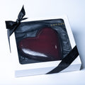 A handmade Milk Chocolate Heart filled with Hazelnut Chocolate, Salted Caramel, Hazelnut Crunch and a thin Hazelnut Sponge.